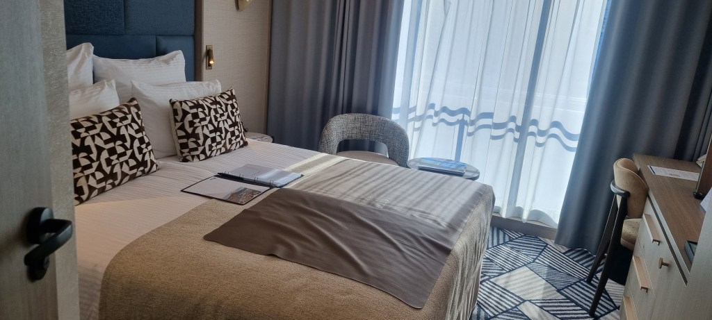 We have all arrived around 6pm and were very quickly checked in. My cabin was spacious and comfortable with a lovely big sliding window that allowed me to look out every day and see the views. Bathroom was surprisingly roomy with very nice toiletries by Rituals.