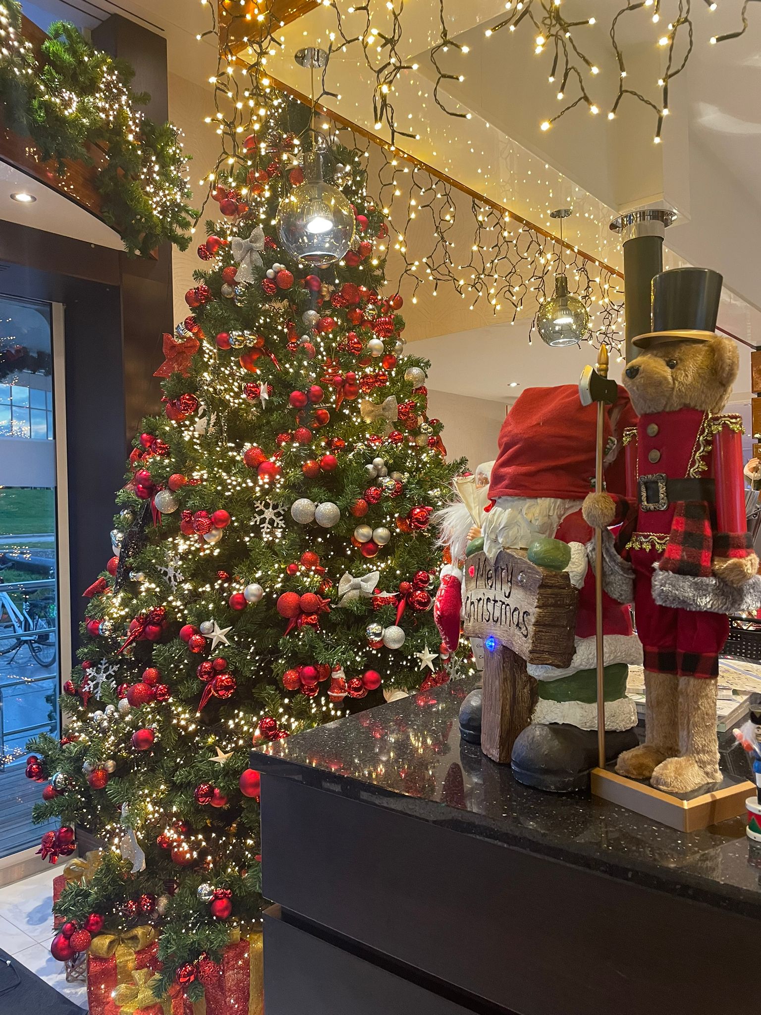 Our return to the ship was marked by a magical moment. The ships slick interiors were transformed with the warm glow of festive decadence- wreaths, baubles, fairy lights and Santa’s marked every inch.