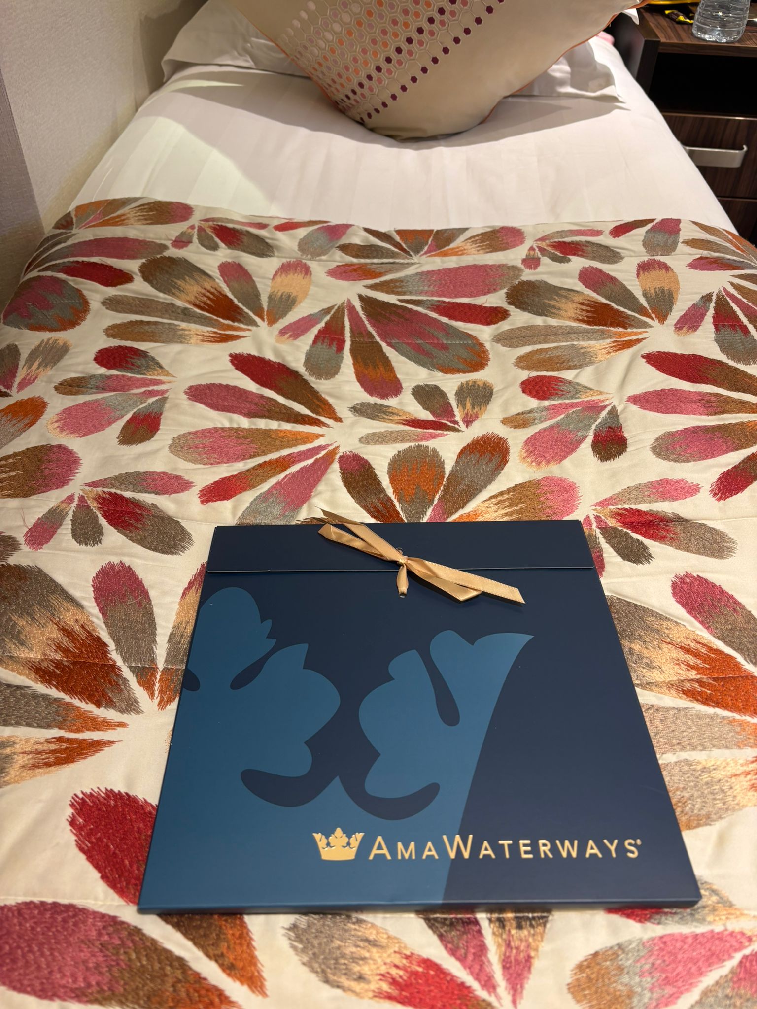 After being whisked to my stateroom (where my luggage had magically beaten me), I found a beautifully presented silk scarf awaiting my arrival. Amawaterways branded and luxuriously packaged, with an elegant design featuring the Vincent Van Gogh Almond Blossom print. These small, thoughtful gestures are the luxurious touch points that reinforce value for your discerning clients.